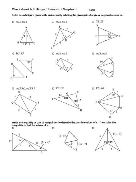 Hinge Theorem Worksheet With Answers Pdf